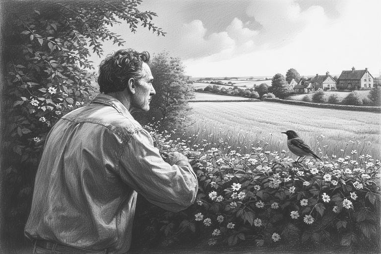As he reached the field beyond the hedge, Thomas paused. The wildflowers nodded, the robins sang, and the farm, in all its imperfection, was enough. And in that enough, he found everything.